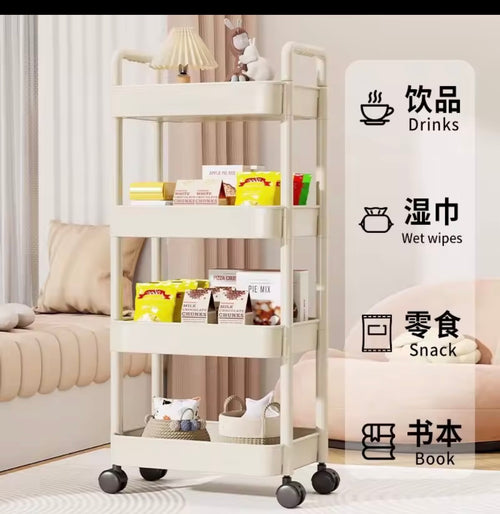 Rolling Cart with Handle and Storage Shelf — Freestanding, Multi-Tier Storage for Kitchen, Bathroom, Snacks, and Toiletries
